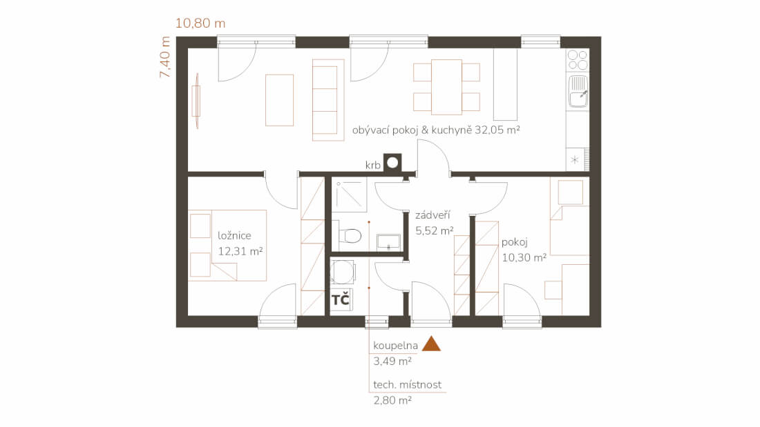 - počet místnosti 3+kk