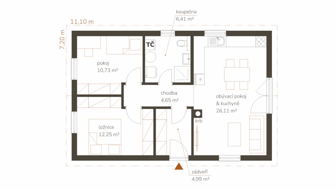 - počet místností 3+kk