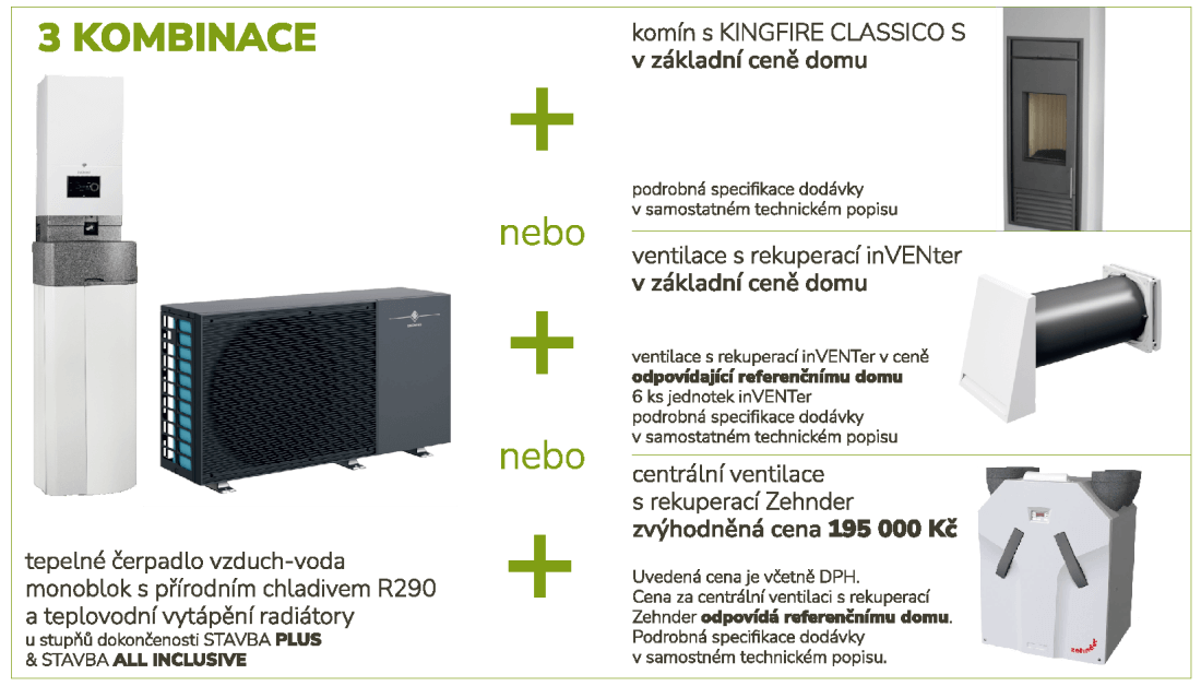 - zvýhodněná cena 195 000 Kč vč. DPH za centrální jednotku a odpovídá referenčnímu domu, bližší iformace u regionálního zástupce