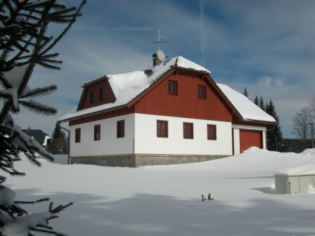 Naše požadavky na budoucí dům byly v podstatě jenom dva: dřevostavba a v ní kachlová kamna. Ideálního dodavatele jsme nakonec náhodou našli přímo při cestě ze Šumavy do Prahy. Jednou jsme totiž zahlédli v Horažďovicích vzorový dům firmy ATRIUM – navštívili jsme jej a moc se nám zalíbil. Po několika obsáhlých konzultacích s představiteli firmy bylo rozhodnuto: náš horský dům postaví horažďovické Atrium, jehož profesionalita i vstřícný přístup nás oslovily. Protože se mělo stavět ve II. zóně Národního parku Šumava, dům se musel řídit regulativy parku a celkovým vzhledem i detaily přizpůsobit zdejší původní zástavbě. S tím nebyl problém, všechno vyhovovalo: bílá barva fasády s dřevěnými štíty, velikost oken, sklon a barva střechy i další detaily. Národní park se vyjádřil k projektu společnosti ATRIUM kladně a ani při kolaudaci nebyly námitky.