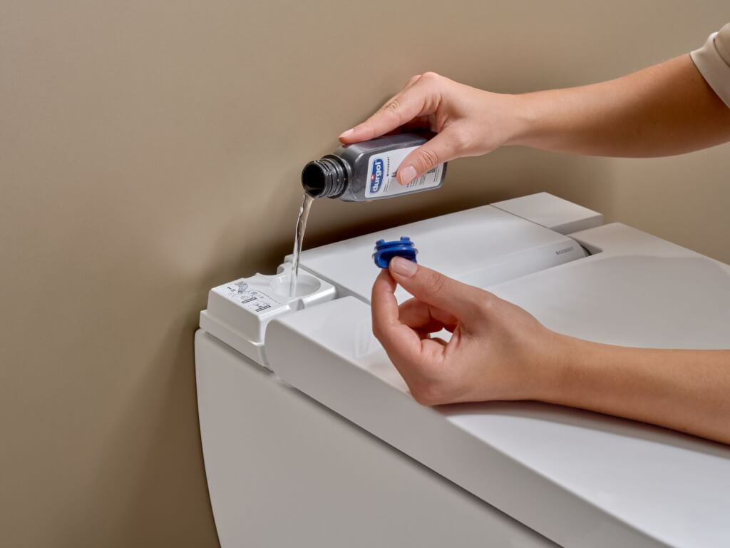 Jednoduchý automatický odvápňovací program odstraňuje usazeniny ze všech částí toalety, které přicházejí do styku s vodou. LED signál na dálkovém ovladači signalizuje, kdy je potřeba odvápnění provést. Aplikace vás rovněž upozorní.