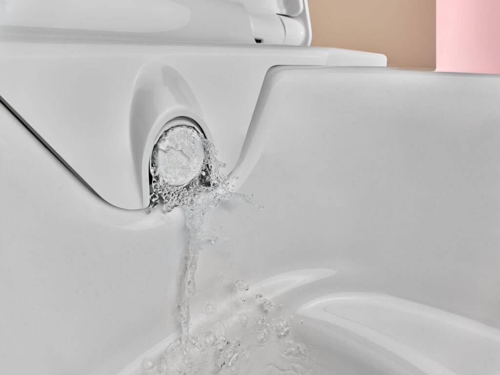 Kombinace inovativní technologie TurboFlush a asymetrické vnitřní geometrie bezokrajové WC mísy patentované společností Geberit zajišťuje, že proces splachování je tichý, a přitom mimořádně účinný. Toaleta si vystačí s jediným bočním splachovacím otvorem a navíc se velmi snadno čistí.