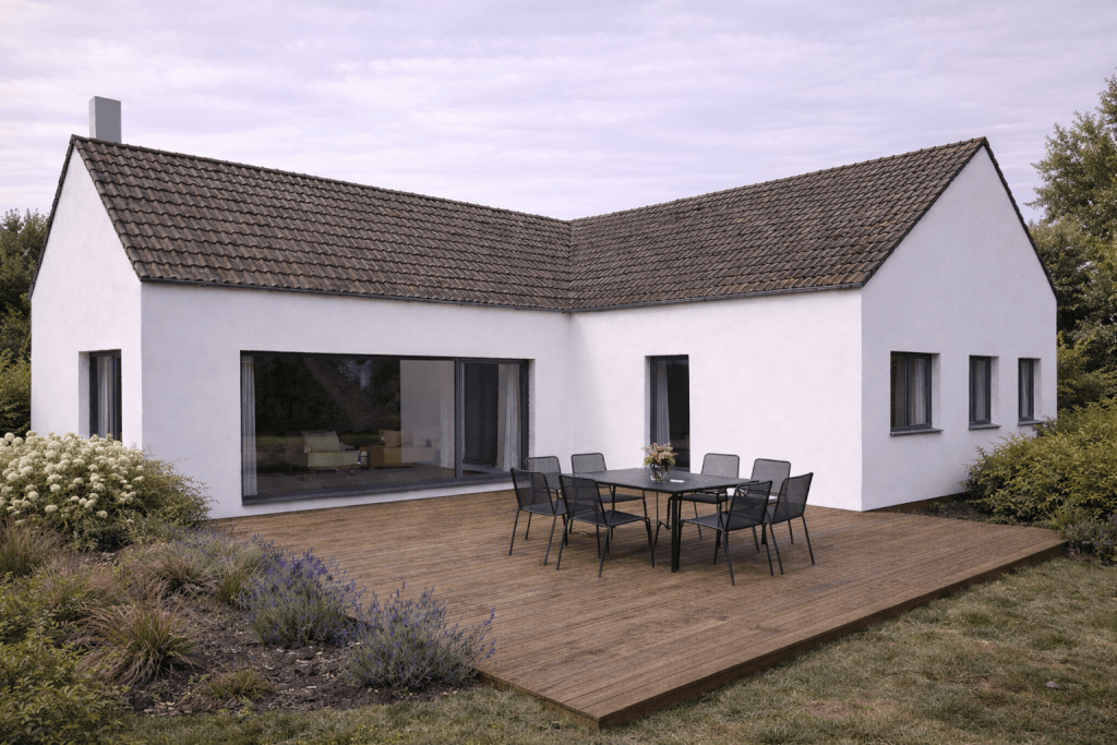 Od 13.05.2026 začínáme s montáží přízemního domu o velikosti 164 m2 v okrese Hodonín. Rodinný dům upravujeme na míru. Dům stavíme v difuzně otevřené konstrukci DIFUTECH® v dokončenosti stavba ALL INCLUSIVE.