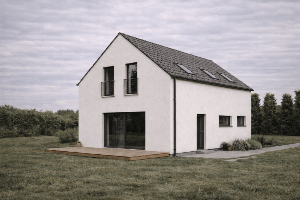 Od 06.05.2026 začínáme s montáží podkrovního domu o velikosti 157 m2s individuálními úpravami v okrese České Budějovice. Rodinný dům upravujeme na míru. Dům stavíme v difuzně otevřené konstrukci DIFUTECH® v dokončenosti stavba ALL INCLUSIVE.