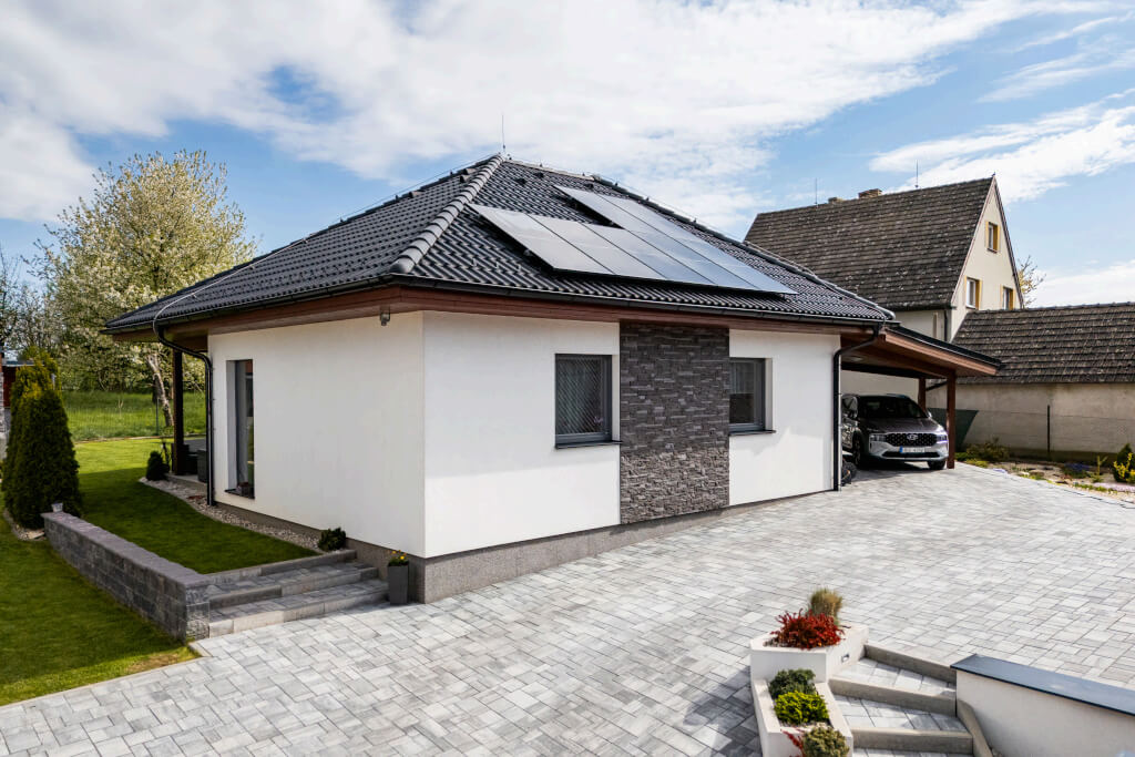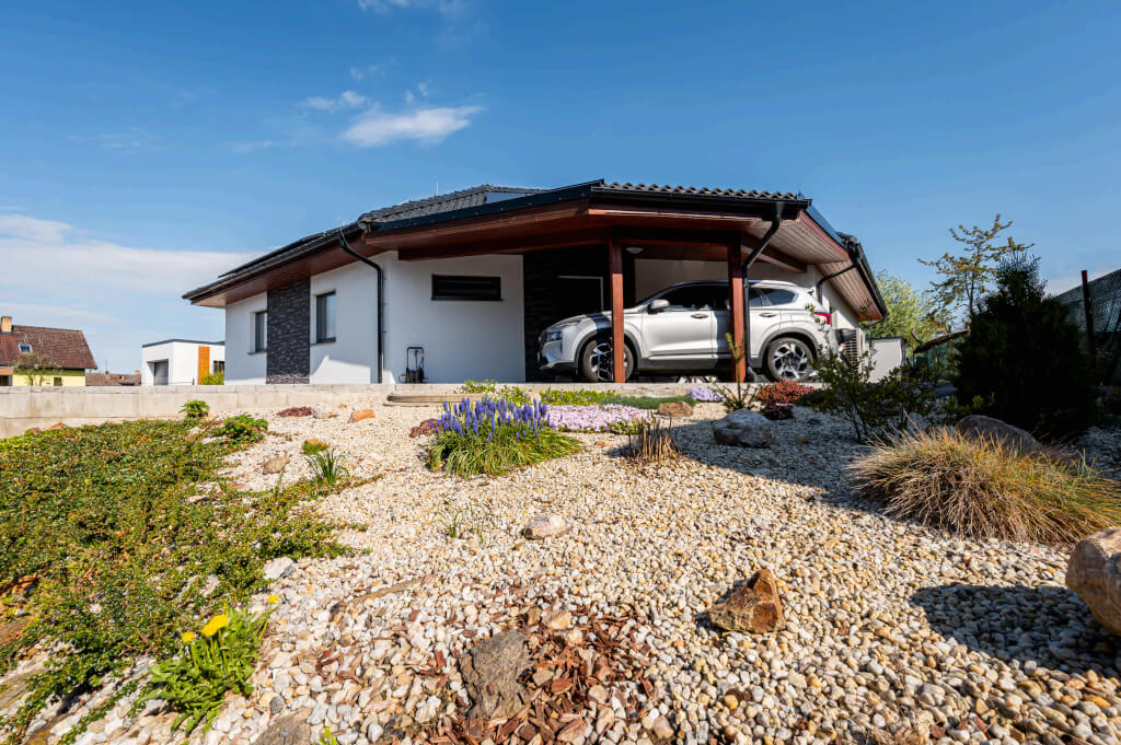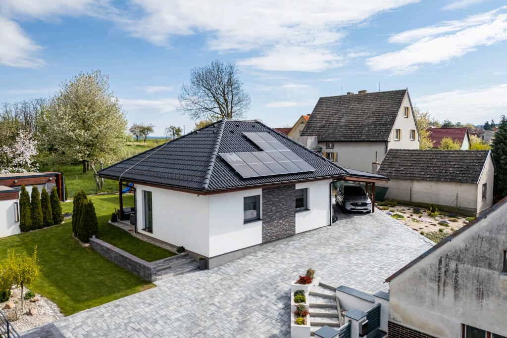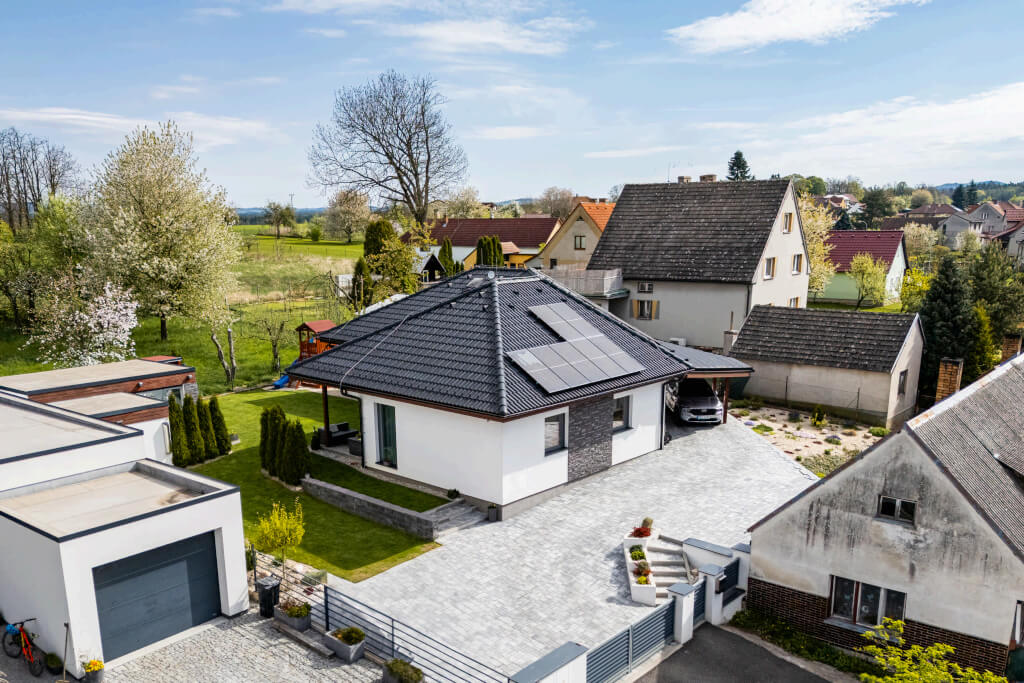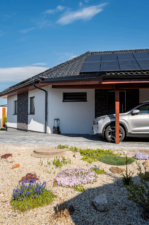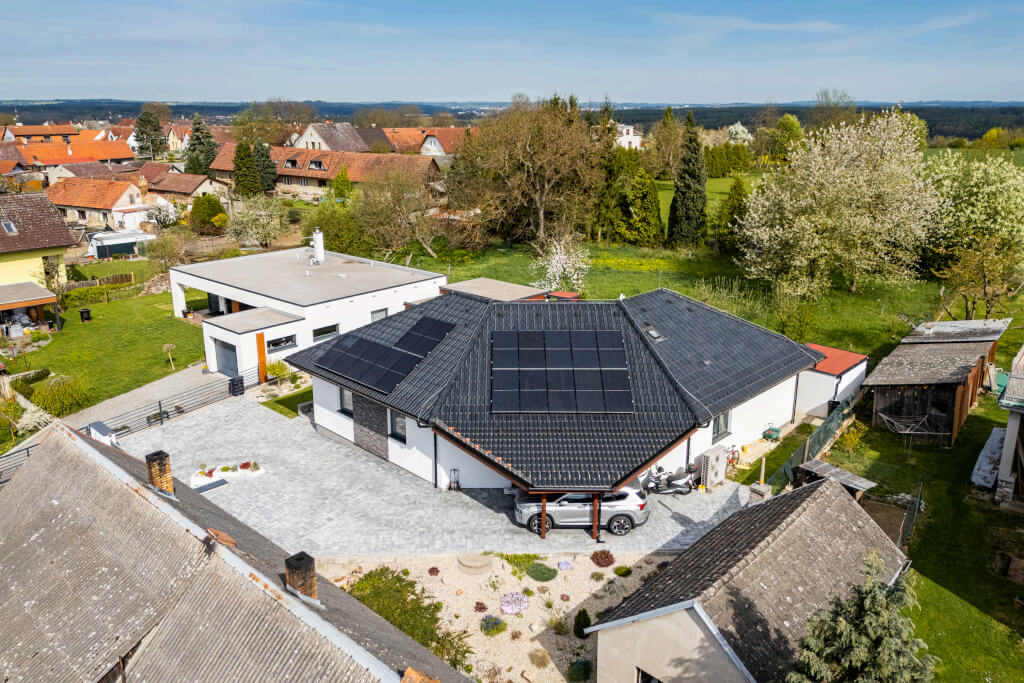 Dům se stavěl v roce 2006 a jeho konstrukční systém i vybavení odpovídají tehdejším standardům. Jedná se ještě o difuzně uzavřenou konstrukci s vytápěním elektrokotlem. Postupem času však došlo k modernizaci – nyní je dům vytápěn tepelným čerpadlem a doplněn o fotovoltaiku, což přineslo významnou úsporu energií. „Na podzim však rádi zatopíme i v krbu, má to své kouzlo,“ dodává pan Jan a poznamenává, že dnes by určitě volil podlahové topení. Tehdy zvolil radiátory, protože to byl běžný standard.
