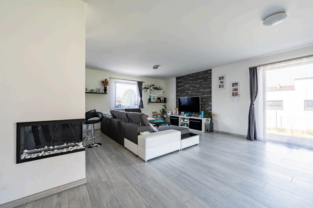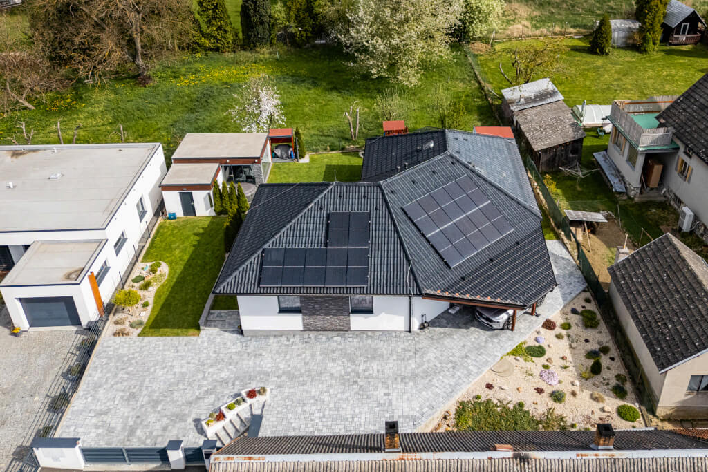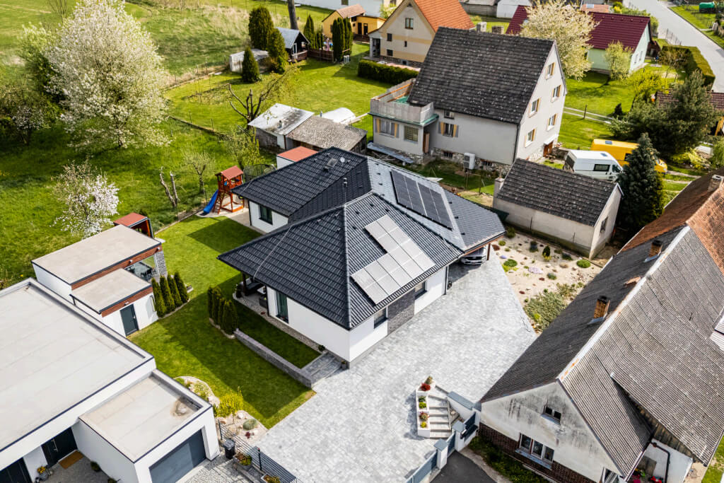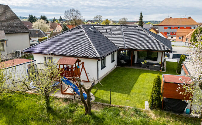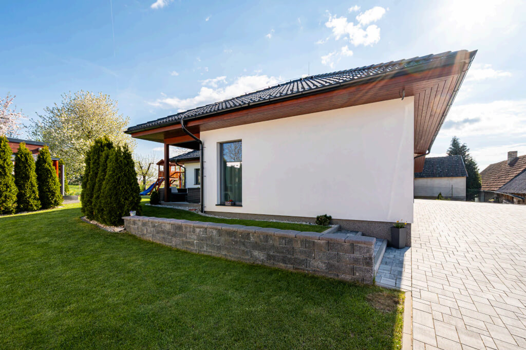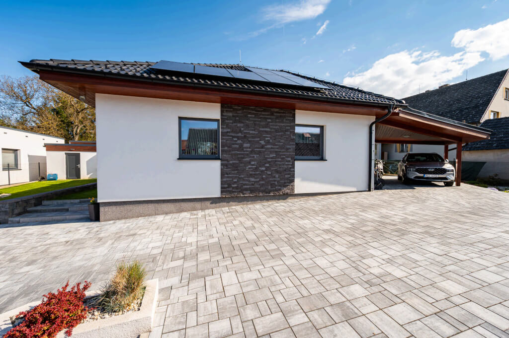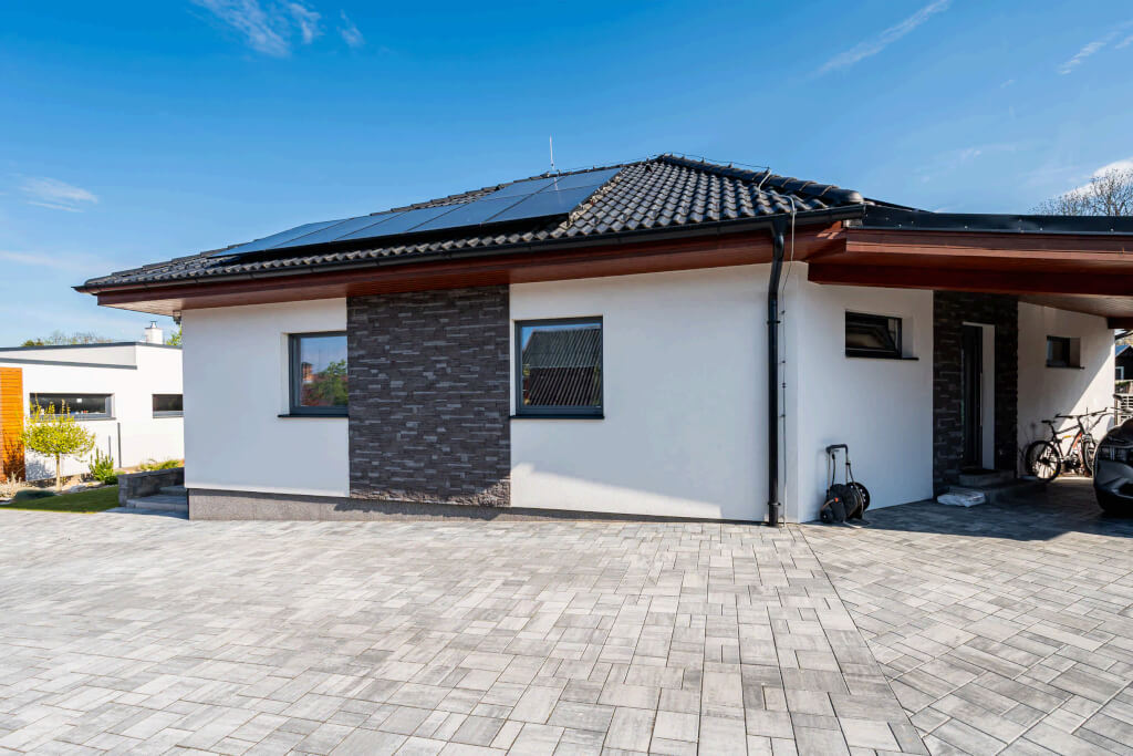 Dům se stavěl v roce 2006 a jeho konstrukční systém i vybavení odpovídají tehdejším standardům. Jedná se ještě o difuzně uzavřenou konstrukci s vytápěním elektrokotlem. Postupem času však došlo k modernizaci – nyní je dům vytápěn tepelným čerpadlem a doplněn o fotovoltaiku, což přineslo významnou úsporu energií. „Na podzim však rádi zatopíme i v krbu, má to své kouzlo,“ dodává pan Jan a poznamenává, že dnes by určitě volil podlahové topení. Tehdy zvolil radiátory, protože to byl běžný standard.
