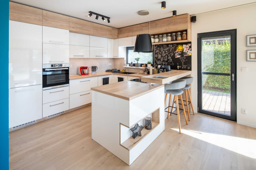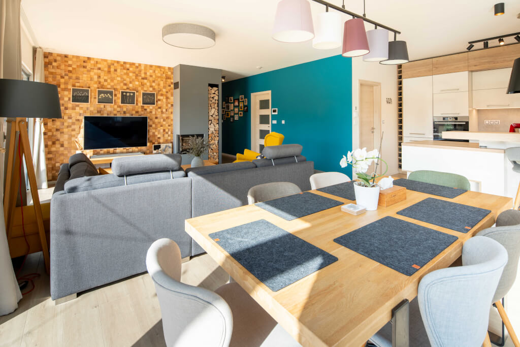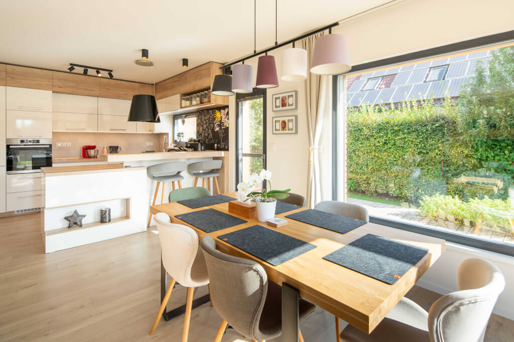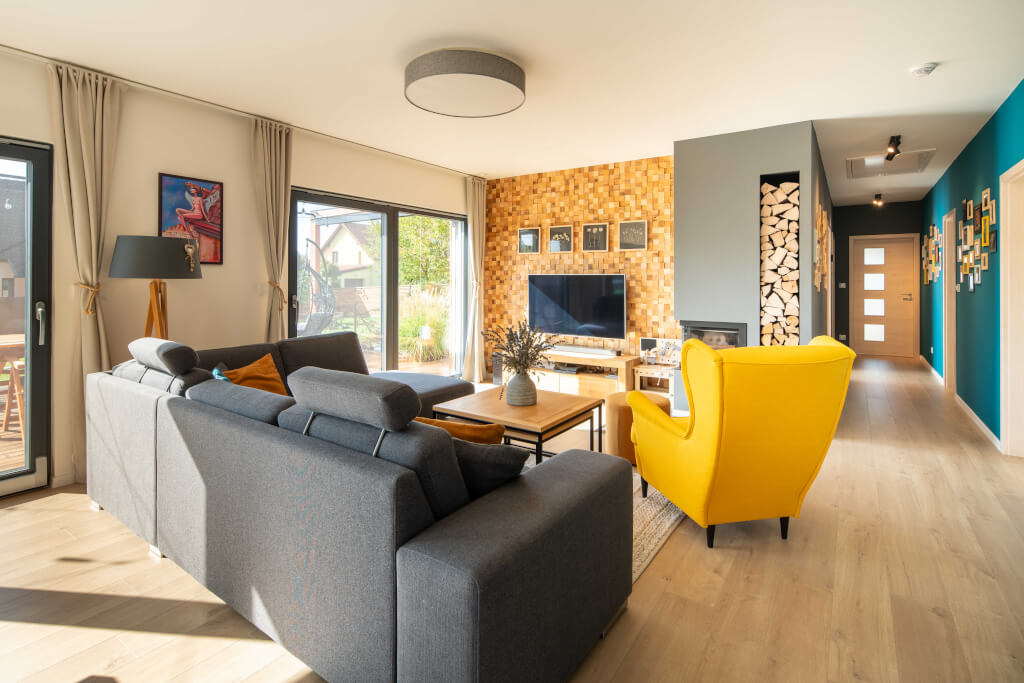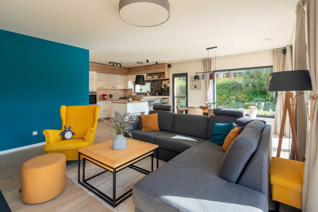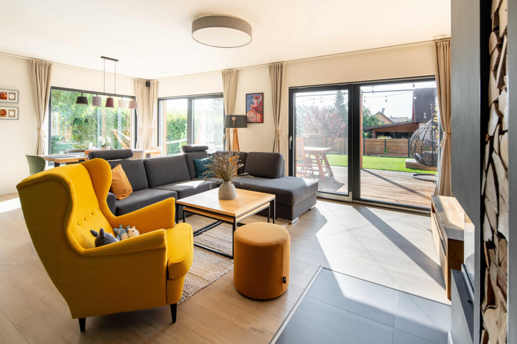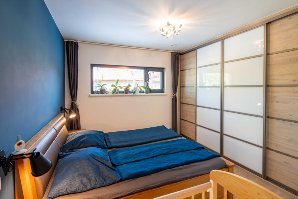 Ano, 115 m2 je v podstatě podstandard, nám to ale stačí. Když se stěhujete z bytu, je každý dům dost velký. Vycházeli jsme z typového projektu domu Vela, který dodavatel avizoval jako ideální pro rodinu s dvěma dětmi. Rozdělení prostoru do místností jsme ale nechali trochu upravit – místo čtyř ložnic máme tři a rozmístění místností v půdorysu je krapet jinak. Členění na společenskou a klidovou část ale zůstalo a dům stále nabízí to správné množství intimity i společných prostor pro sdílení rodinných okamžiků. Díky jednoduchým liniím a minimálnímu množství nepravidelností se také velmi snadno uklízí, což s dvěma malými dětmi člověk ocení. Prostě je to velikost tak akorát.