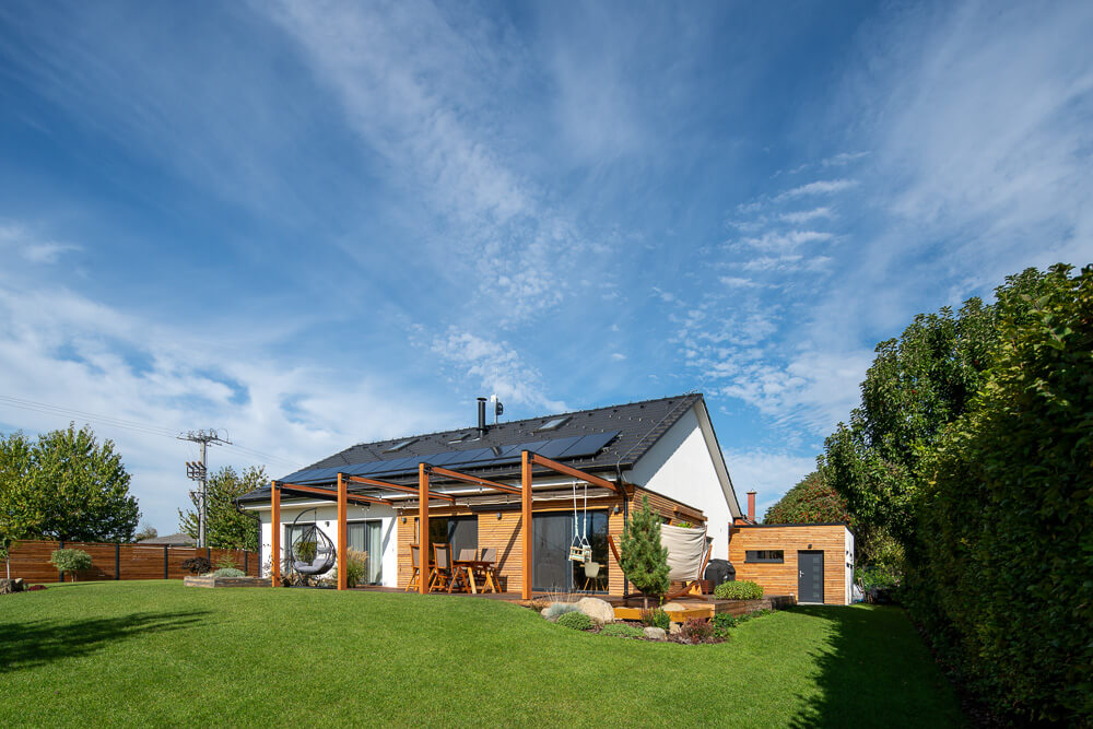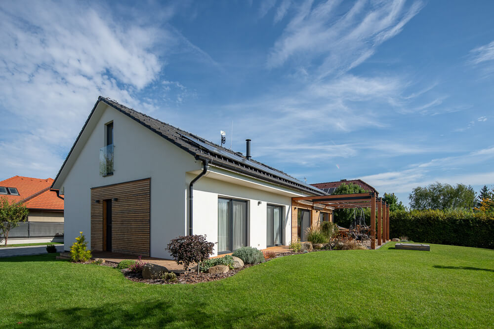 Určitě to znáte: právě, když si myslíte, že už vás jen tak něco nerozhodí, vyskočí zpoza rohu „tadáá – překvapení“ a vy třeba zdědíte lamu. V případě domku čtyřčlenné rodiny Stanislava a Renáty měla nečekaná jiskra ve všedním dni opačnou polaritu; byla tím, co mi náladu zvedlo. Přesto, že by plocha jejich parcely mohla posloužit pro palác, oni do ní usadili jednoduchý, praktický a útulný dům, ve kterém se nikdo neztratí ani při hledání toalety.