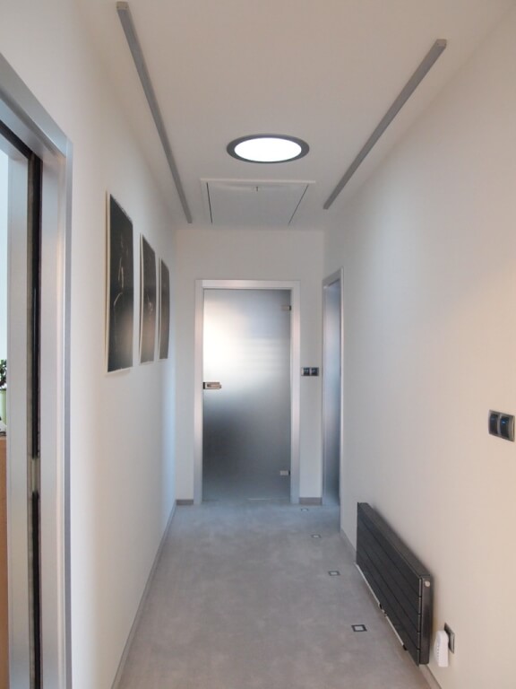 Realizaci projektu jsme chtěli zadat jedné firmě a po obhlídce několika vzorových domů padla volba na společnost ATRIUM. Koncept domu vychází z typového projektu Laguna a je upraven podle našich požadavků – dispozice 3+kk na pouhých 90 m2. Dostatečný obývací prostor a dvě ložnice jsou otevřeny přímo na terasu a do zahrady. Každý máme svoji koupelnu a nechybí zejména kvalitní úložný prostor – velká šatna. Dopřáli jsme si mobilní zastřešení terasy, což se ukázalo jako geniální a dům pozvedlo o dalších sto procent. Od jara do podzimu žijeme vlastně na terase.