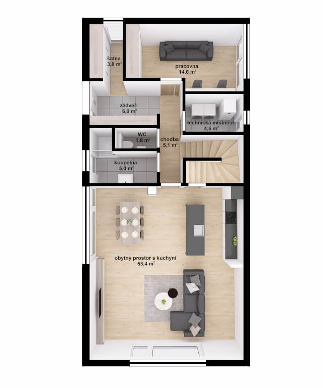 Vydejte se na cestu za dokonalým domovem a získejte více informací o této jedinečné dřevostavbě, která vám nabídne nejen prostor, ale i styl a klid pro váš život. Dispozice i orientaci domu umíme flexibilně upravit podle vašich potřeb.