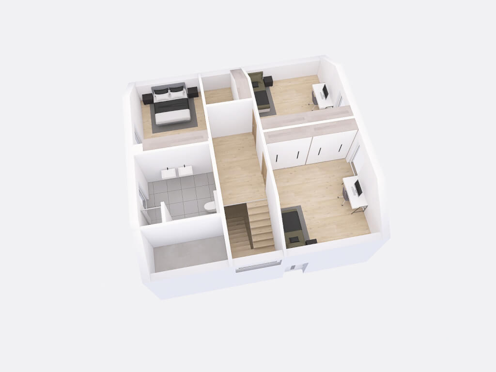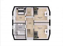 Moderní patrový rodinný dům Terra 173 patří mezi velmi žádaný a oblíbený model. Svému domu můžete dodat ještě zajímavější vzhled přidáním balkónu a dřevěným obložením na štítovou stranu nebo si dopřát příjemné chvíle v zimní zahradě v létě i v zimě. Zimní zahrada domu Terra 173 vysloveně sluší. Záleží jen na vás, jak si dům přizpůsobíte! Čtvercový půdorys má tři velmi prostorné ložnice v patře, díky tomu je dům vhodnou volbou pro velkou rodinu.