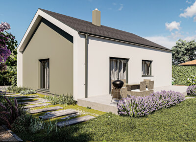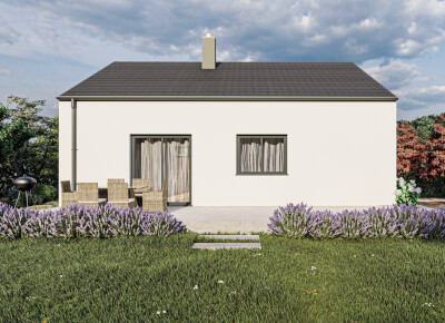 Útulné malé dřevostavby, jako je malý bungalov Vario Profi 73, jsou ideální jako víkendové bydlení nebo pro starší manželský pár, ke kterým přijedou děti na návštěvu či na prázdniny. Dům je nenáročný na úklid a údržbu. Na terasu projdete velkými francouzskými okny a užijete si krásný výhled do zahrady.